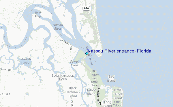 Use this relief map to navigate to tide stations, surf breaks and cities that are in the area of Nassau River entrance, Florida.