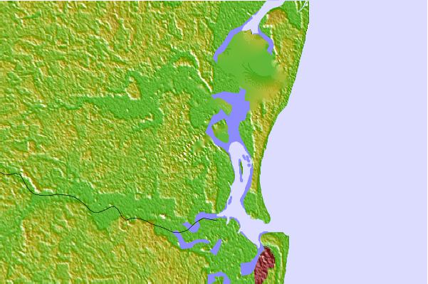 Use this relief map to navigate to tide stations, surf breaks and cities that are in the area of Navy fuel depot, Saint Johns River, Florida.