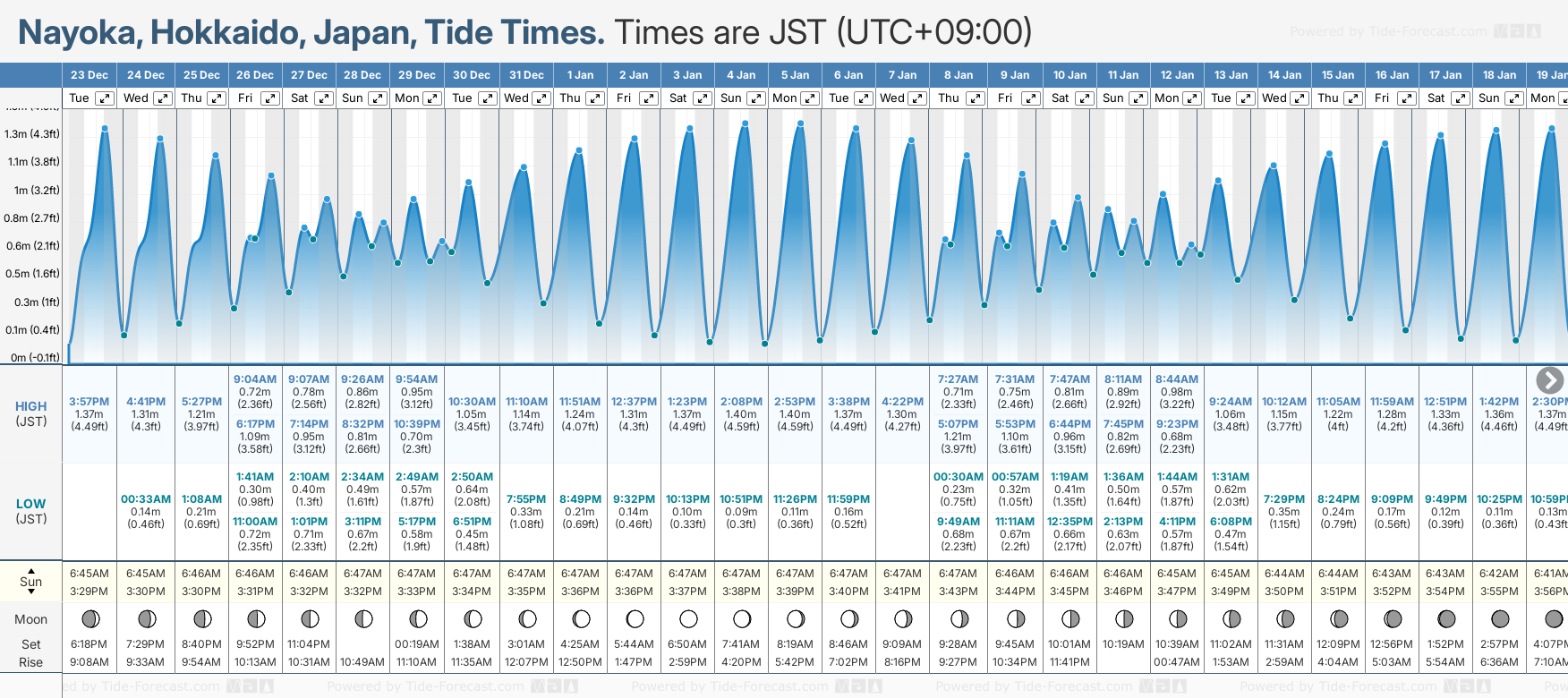 Today's tide times for Nayoka, Hokkaido, Japan