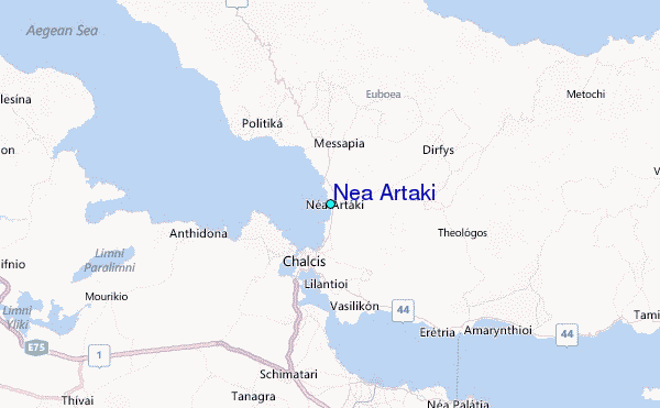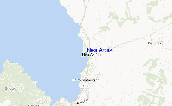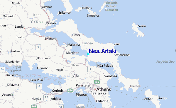 Use this relief map to navigate to tide stations, surf breaks and cities that are in the area of Nea Artaki.