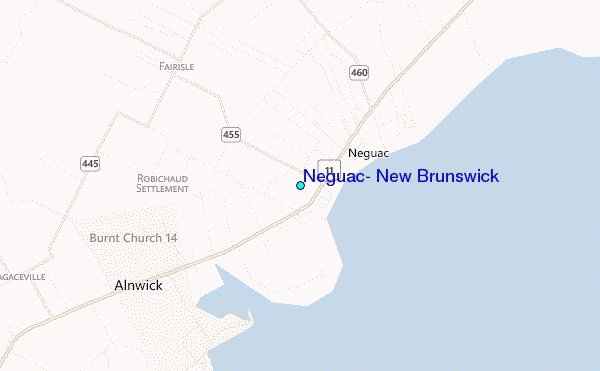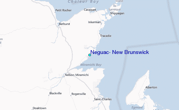Use this relief map to navigate to tide stations, surf breaks and cities that are in the area of Neguac, New Brunswick.