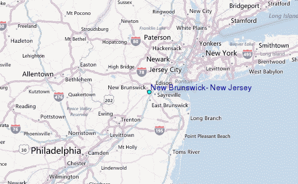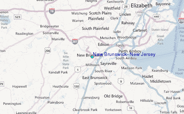 Use this relief map to navigate to tide stations, surf breaks and cities that are in the area of New Brunswick, New Jersey.