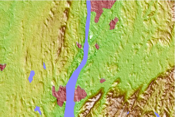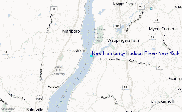 Use this relief map to navigate to tide stations, surf breaks and cities that are in the area of New Hamburg, Hudson River, New York.