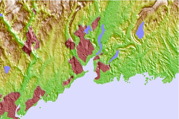 Use this relief map to navigate to tide stations, surf breaks and cities that are in the area of New Haven (city dock), Connecticut.