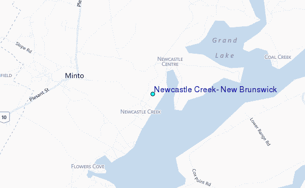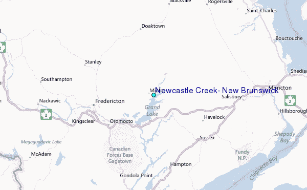 Use this relief map to navigate to tide stations, surf breaks and cities that are in the area of Newcastle Creek, New Brunswick.