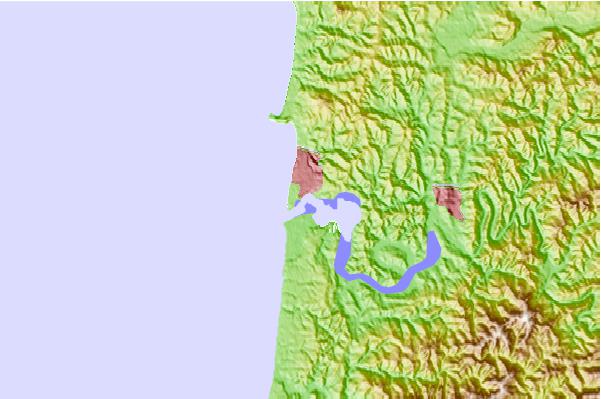 Use this relief map to navigate to tide stations, surf breaks and cities that are in the area of Newport, Yaquina River, Oregon.