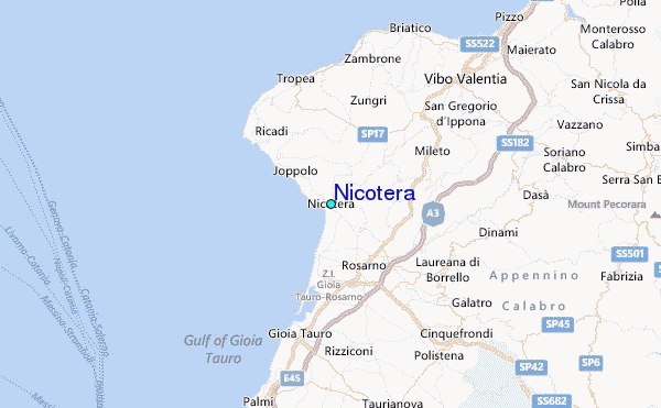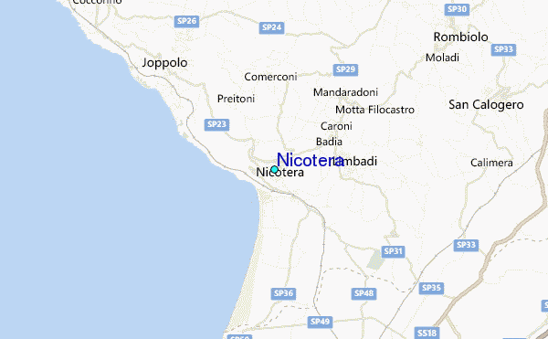 Use this relief map to navigate to tide stations, surf breaks and cities that are in the area of Nicotera.