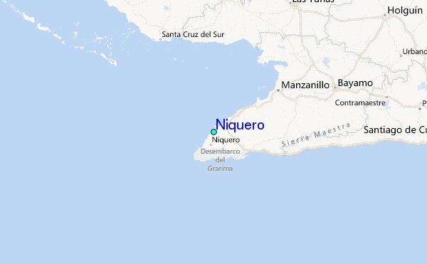 Use this relief map to navigate to tide stations, surf breaks and cities that are in the area of Niquero.