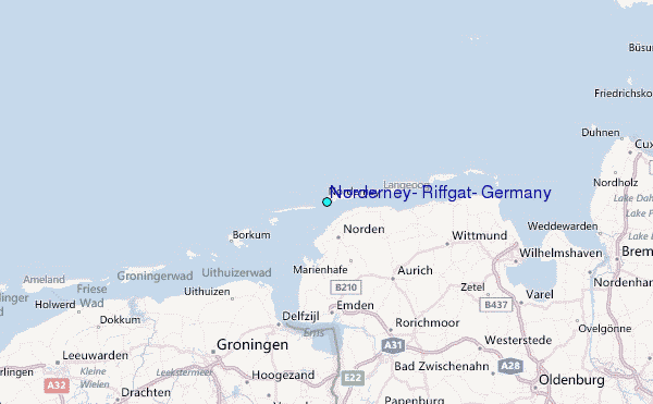 Use this relief map to navigate to tide stations, surf breaks and cities that are in the area of Norderney, Riffgat, Germany.