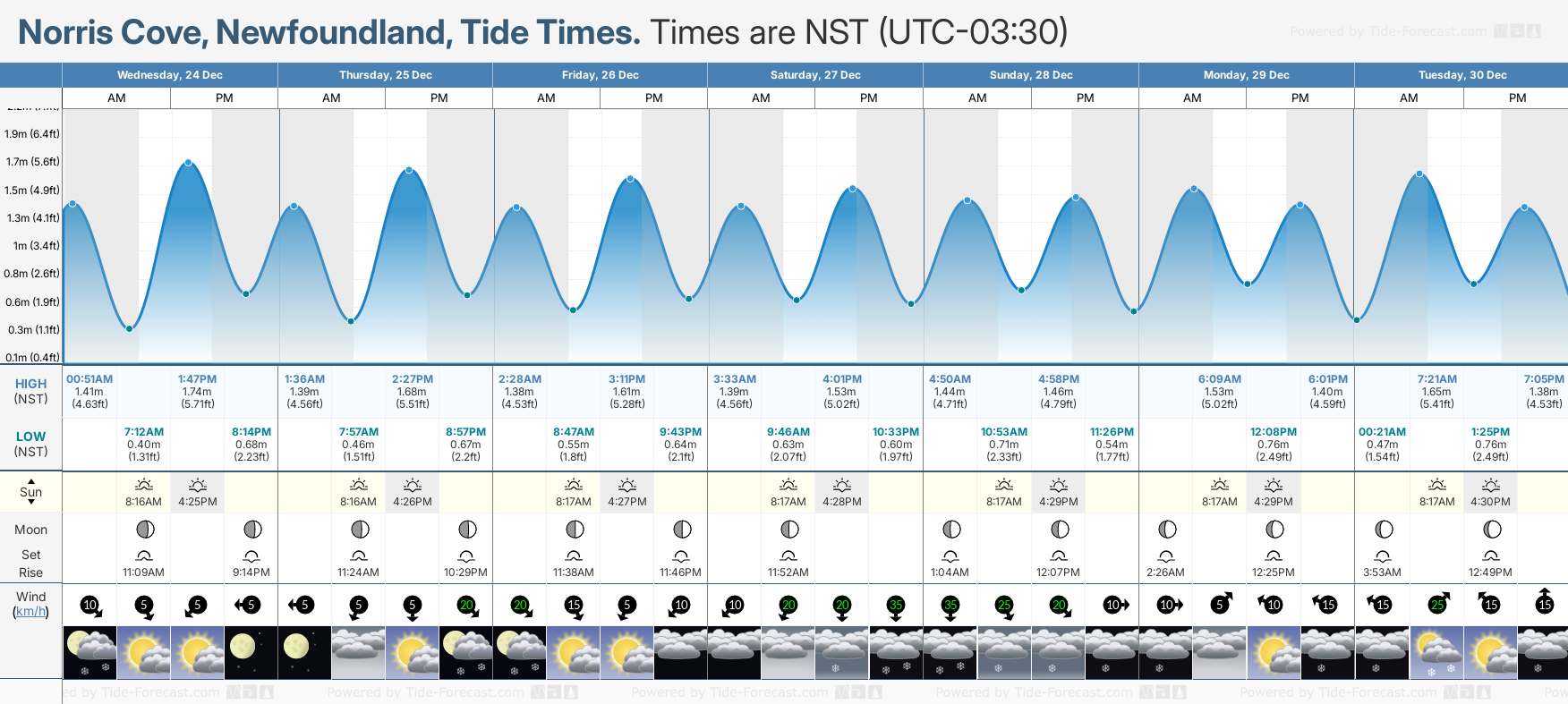 NOTE: Use of this site for Norris Cove, Newfoundland tide times is subject to our terms.