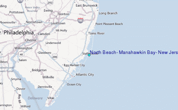 Tide stations located close to North Beach, Manahawkin Bay, New Jersey Shoreline around North Beach, Manahawkin Bay, New Jersey Roads and rivers around North Beach, Manahawkin Bay, New Jersey