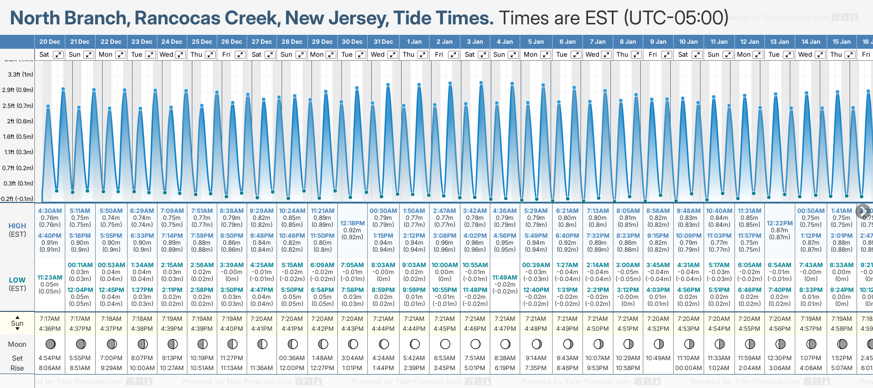 December and January Tide charts for North Branch, Rancocas Creek: The tide charts below show the height, time and date of high and low tides for the next 30 days.