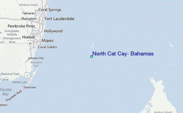 Use this relief map to navigate to tide stations, surf breaks and cities that are in the area of North Cat Cay, Bahamas.