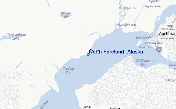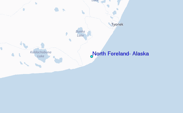 Use this relief map to navigate to tide stations, surf breaks and cities that are in the area of North Foreland, Alaska.