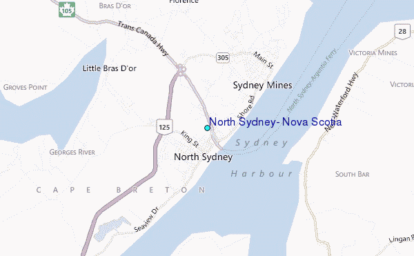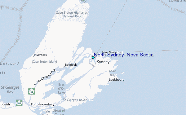 Other Nearby Locations' tide tables and tide charts to North Sydney, Nova Scotia: