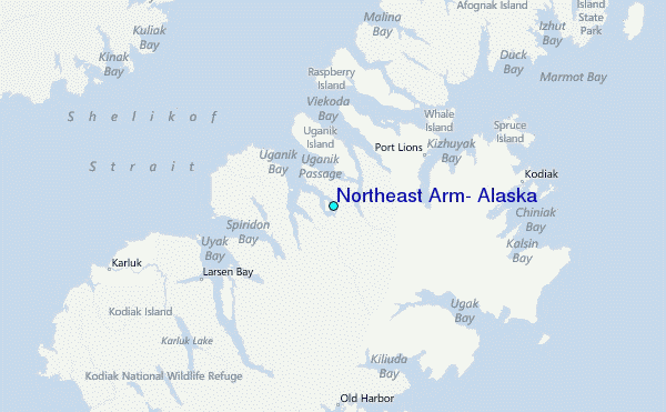 Use this relief map to navigate to tide stations, surf breaks and cities that are in the area of Northeast Arm, Alaska.