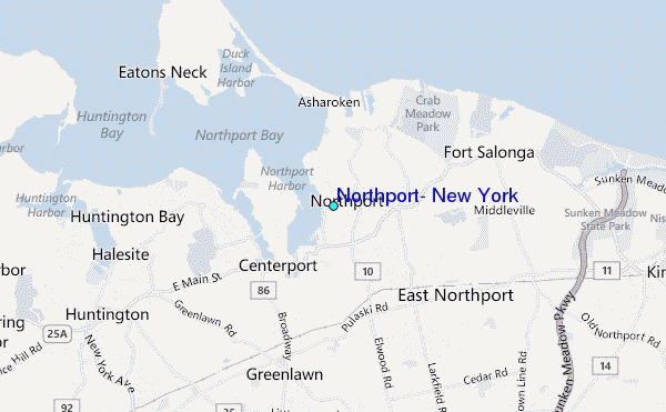 Use this relief map to navigate to tide stations, surf breaks and cities that are in the area of Northport, New York.