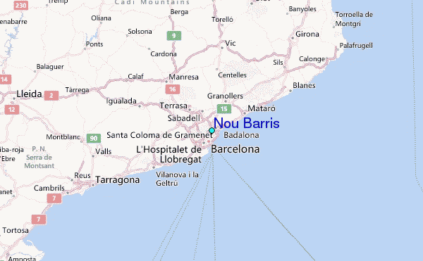 Use this relief map to navigate to tide stations, surf breaks and cities that are in the area of Nou Barris.