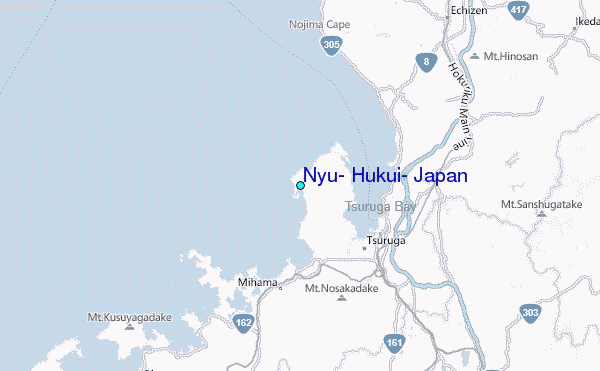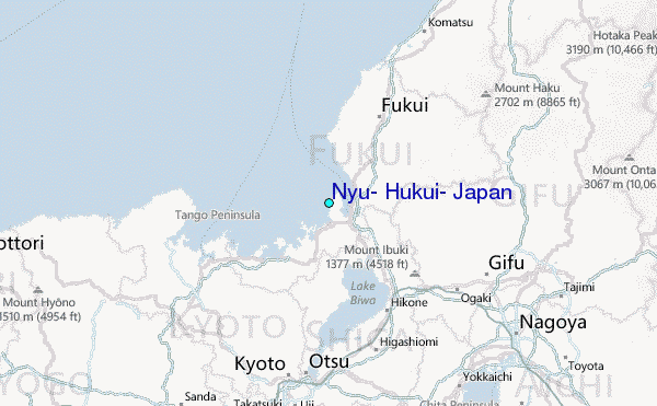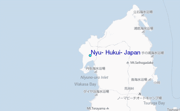 Use this relief map to navigate to tide stations, surf breaks and cities that are in the area of Nyu, Hukui, Japan.