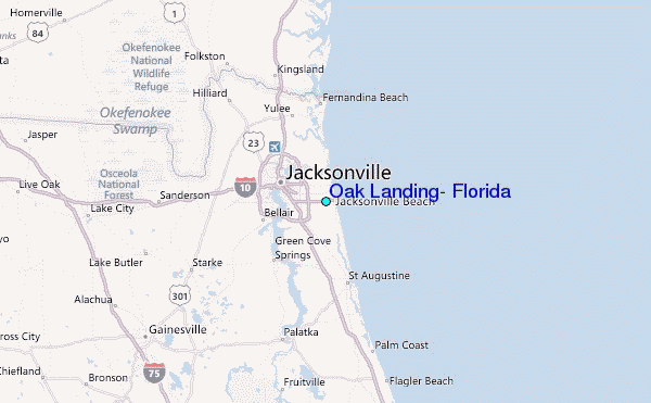 Use this relief map to navigate to tide stations, surf breaks and cities that are in the area of Oak Landing, Florida.