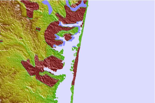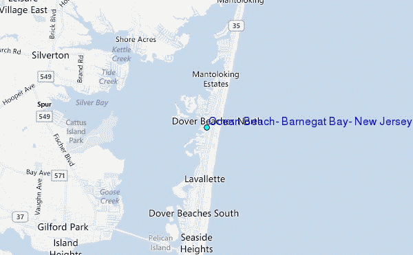 Use this relief map to navigate to tide stations, surf breaks and cities that are in the area of Ocean Beach, Barnegat Bay, New Jersey.