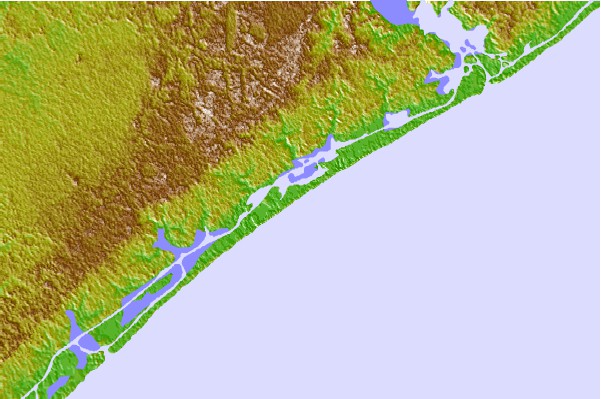 Use this relief map to navigate to tide stations, surf breaks and cities that are in the area of Ocean City Beach (fishing pier), North Carolina.