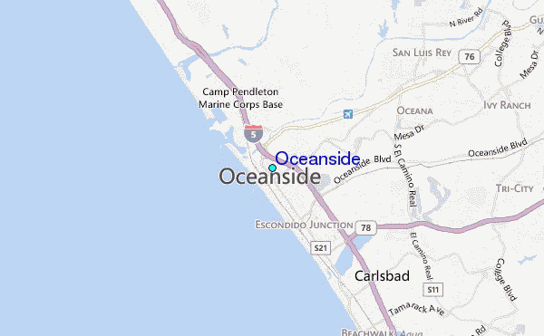 Use this relief map to navigate to tide stations, surf breaks and cities that are in the area of Oceanside.
