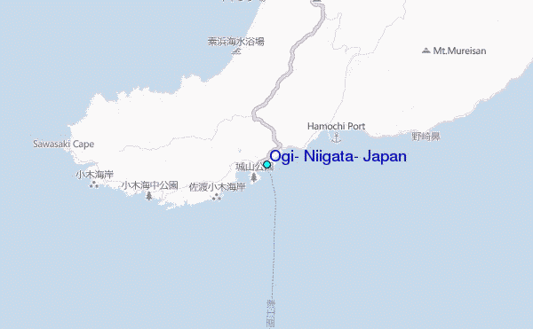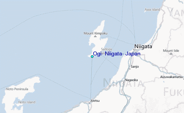 Use this relief map to navigate to tide stations, surf breaks and cities that are in the area of Ogi, Niigata, Japan.