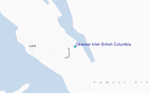 Use this relief map to navigate to tide stations, surf breaks and cities that are in the area of Okeover Inlet, British Columbia.