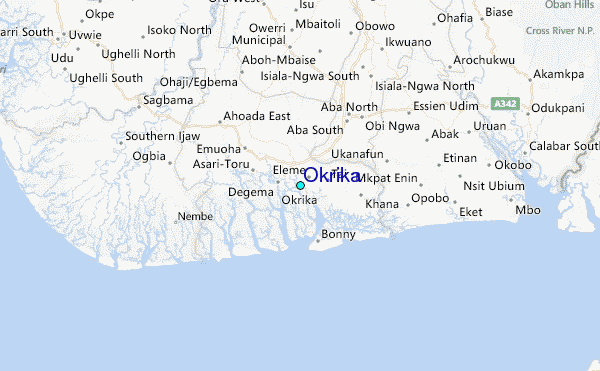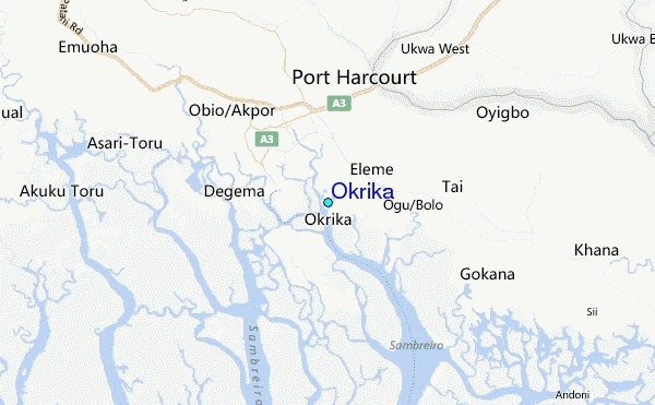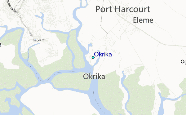 Use this relief map to navigate to tide stations, surf breaks and cities that are in the area of Okrika.
