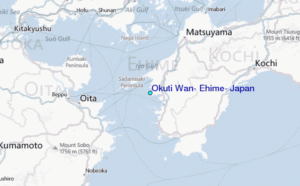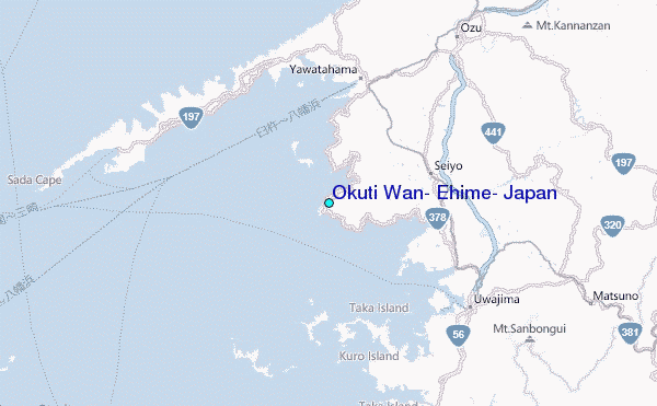 Use this relief map to navigate to tide stations, surf breaks and cities that are in the area of Okuti Wan, Ehime, Japan.