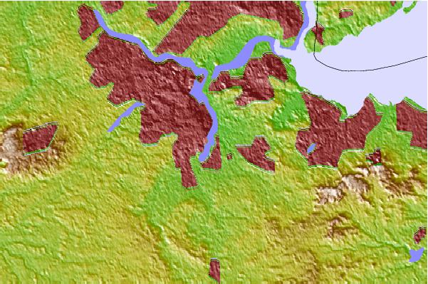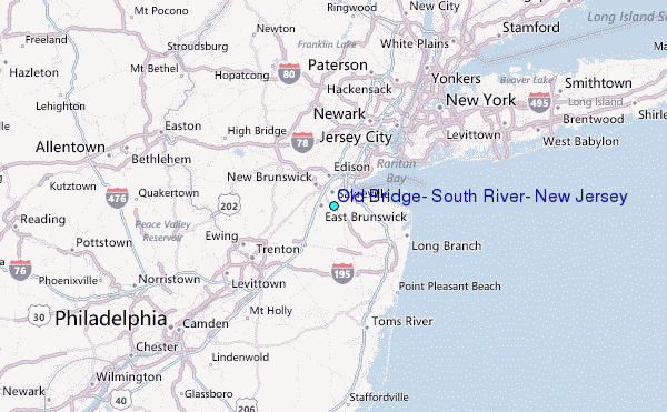 Use this relief map to navigate to tide stations, surf breaks and cities that are in the area of Old Bridge, South River, New Jersey.