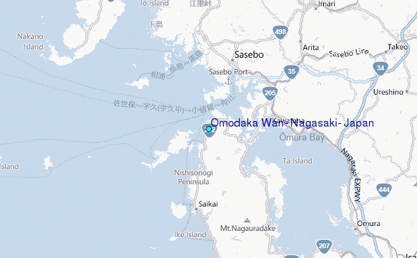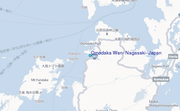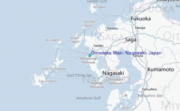 Use this relief map to navigate to tide stations, surf breaks and cities that are in the area of Omodaka Wan, Nagasaki, Japan.