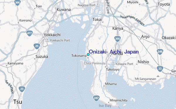 Use this relief map to navigate to tide stations, surf breaks and cities that are in the area of Onizaki, Aichi, Japan.