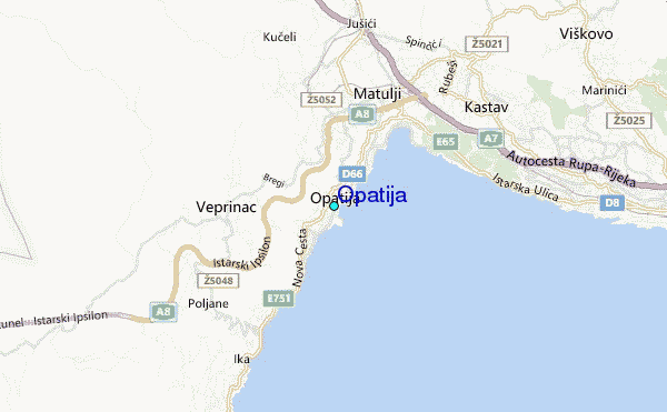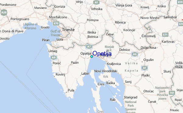 Use this relief map to navigate to tide stations, surf breaks and cities that are in the area of Opatija.