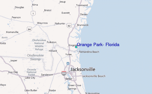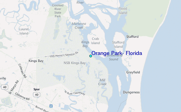 Use this relief map to navigate to tide stations, surf breaks and cities that are in the area of Orange Park, Florida.