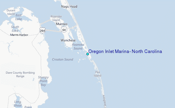 Use this relief map to navigate to tide stations, surf breaks and cities that are in the area of Oregon Inlet Marina, North Carolina.