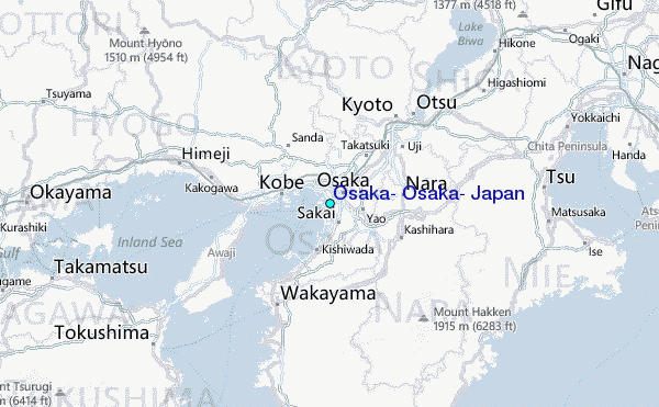 Use this relief map to navigate to tide stations, surf breaks and cities that are in the area of Osaka, Osaka, Japan.