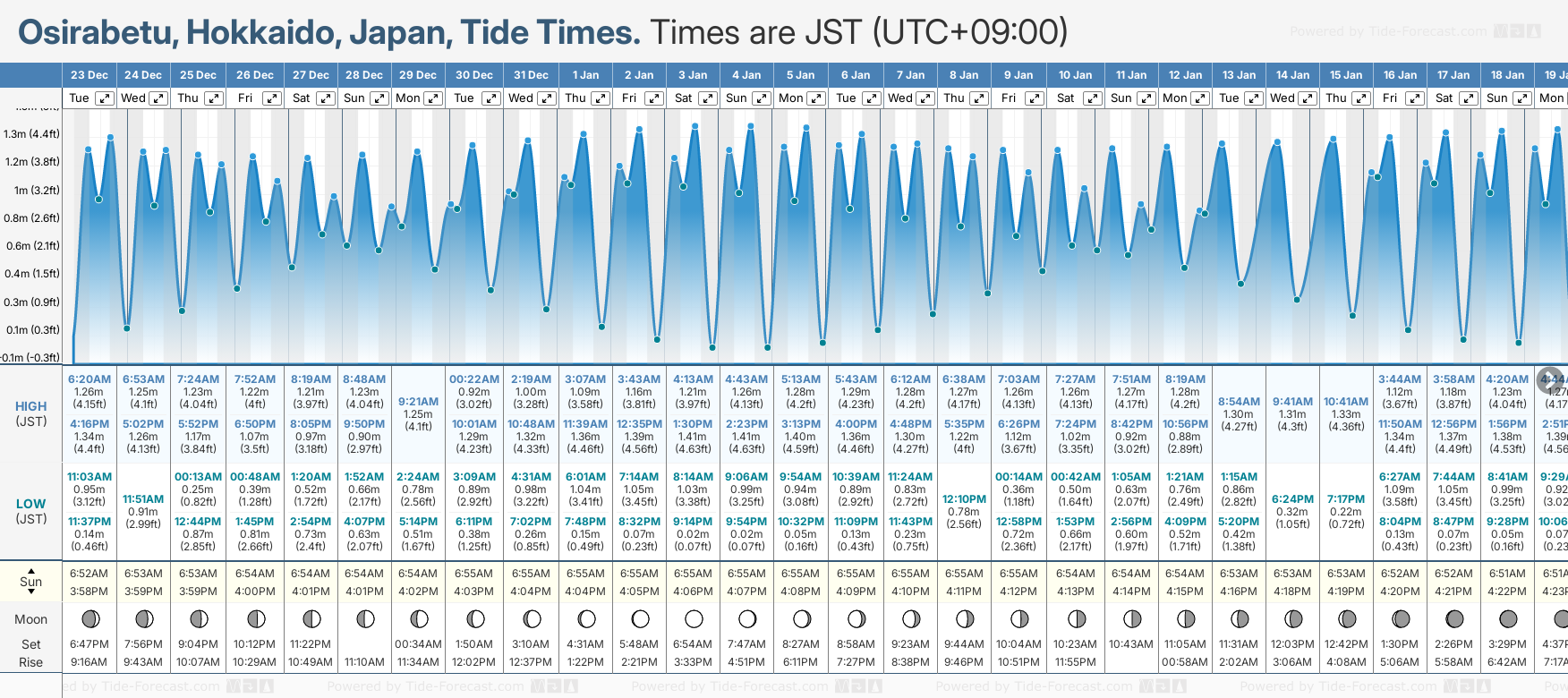 Today's tide times for Osirabetu, Hokkaido, Japan
