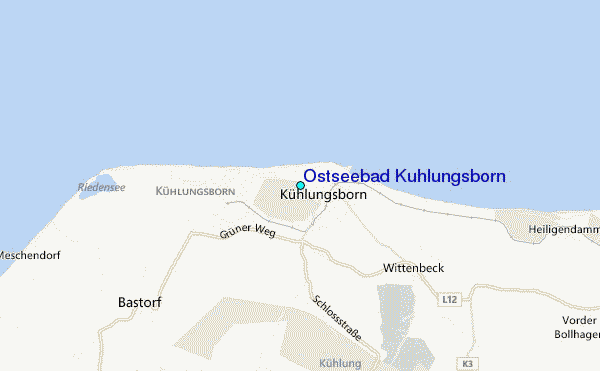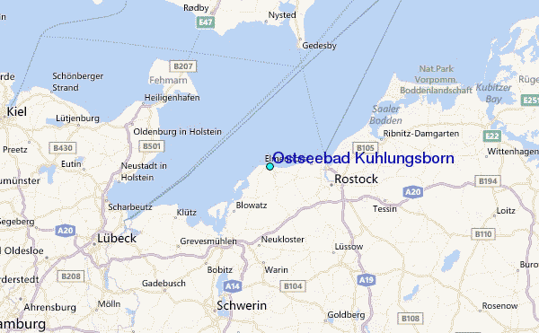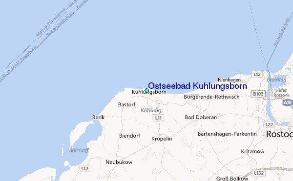 Use this relief map to navigate to tide stations, surf breaks and cities that are in the area of Ostseebad Kuhlungsborn.
