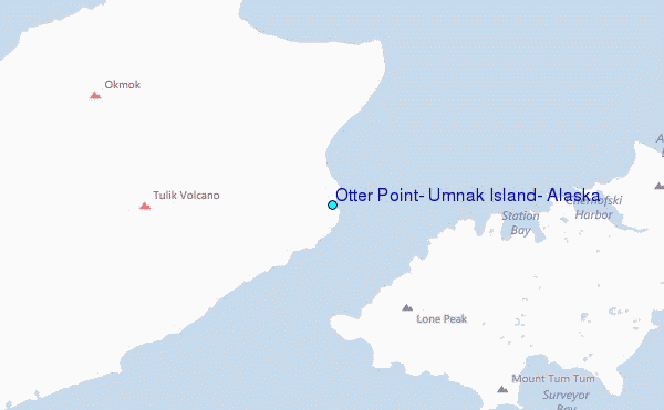 Use this relief map to navigate to tide stations, surf breaks and cities that are in the area of Otter Point, Umnak Island, Alaska.