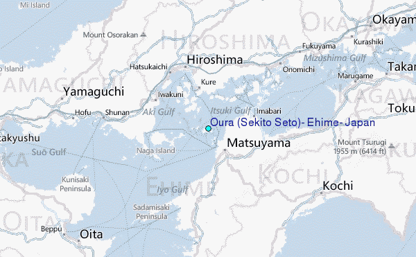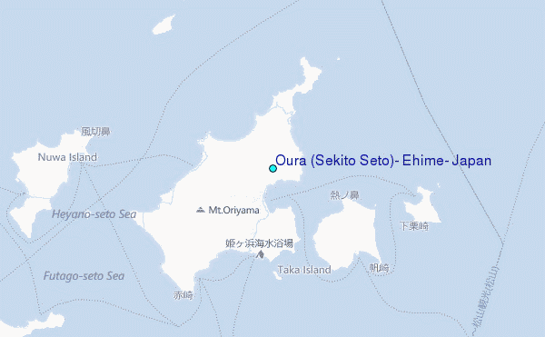 Use this relief map to navigate to tide stations, surf breaks and cities that are in the area of Oura (Sekito Seto), Ehime, Japan.