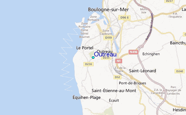 Use this relief map to navigate to tide stations, surf breaks and cities that are in the area of Outreau.