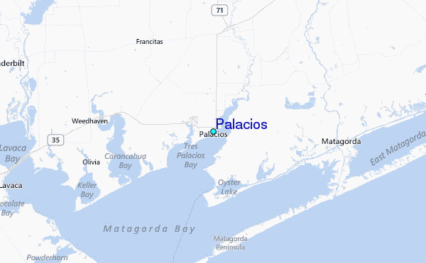 Use this relief map to navigate to tide stations, surf breaks and cities that are in the area of Palacios.
