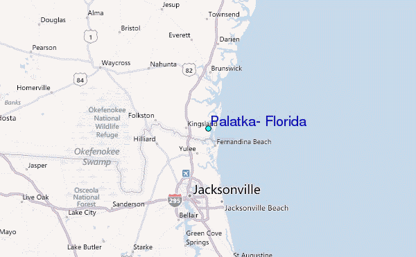 Use this relief map to navigate to tide stations, surf breaks and cities that are in the area of Palatka, Florida.