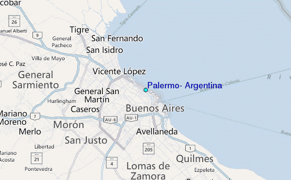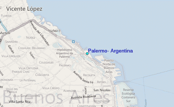 Use this relief map to navigate to tide stations, surf breaks and cities that are in the area of Palermo, Argentina.