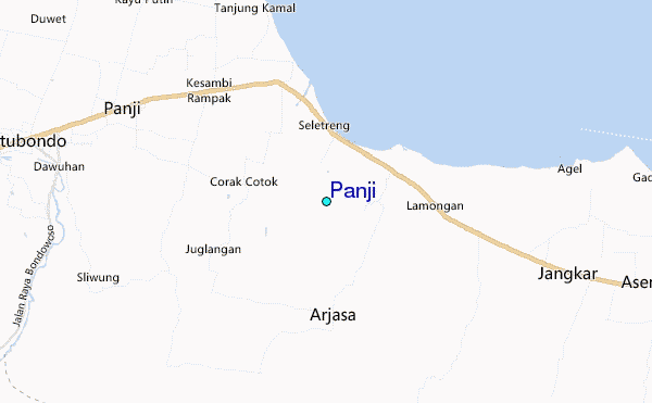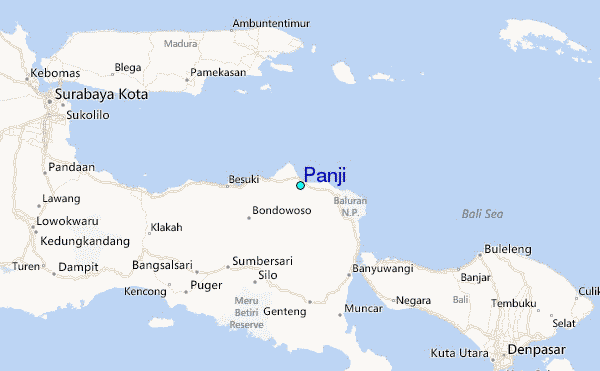 Use this relief map to navigate to tide stations, surf breaks and cities that are in the area of Panji.