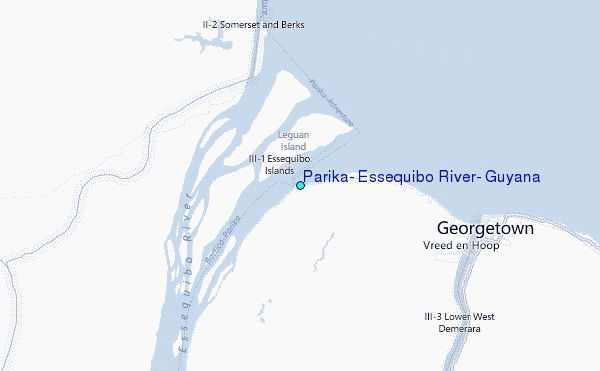 Use this relief map to navigate to tide stations, surf breaks and cities that are in the area of Parika, Essequibo River, Guyana.