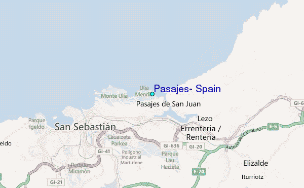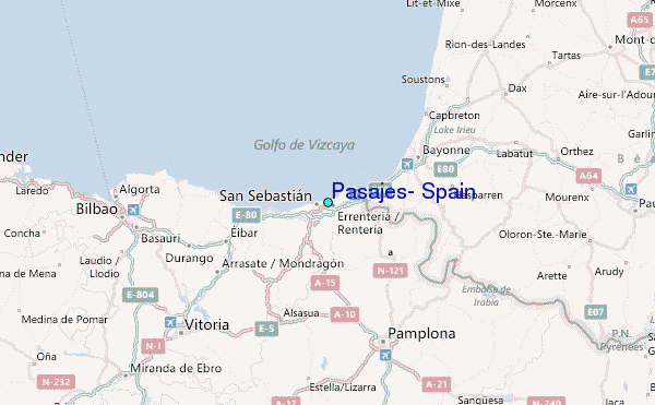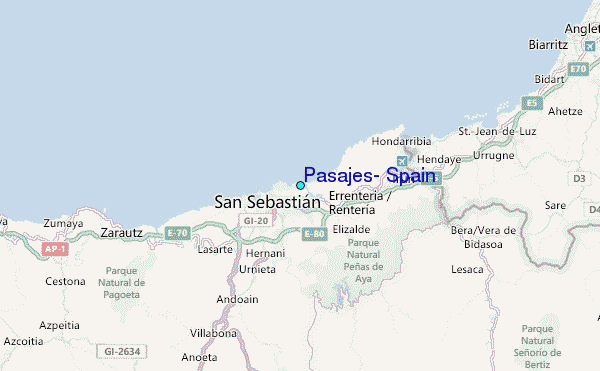 Use this relief map to navigate to tide stations, surf breaks and cities that are in the area of Pasajes, Spain.