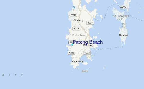 Use this relief map to navigate to tide stations, surf breaks and cities that are in the area of Patong Beach.